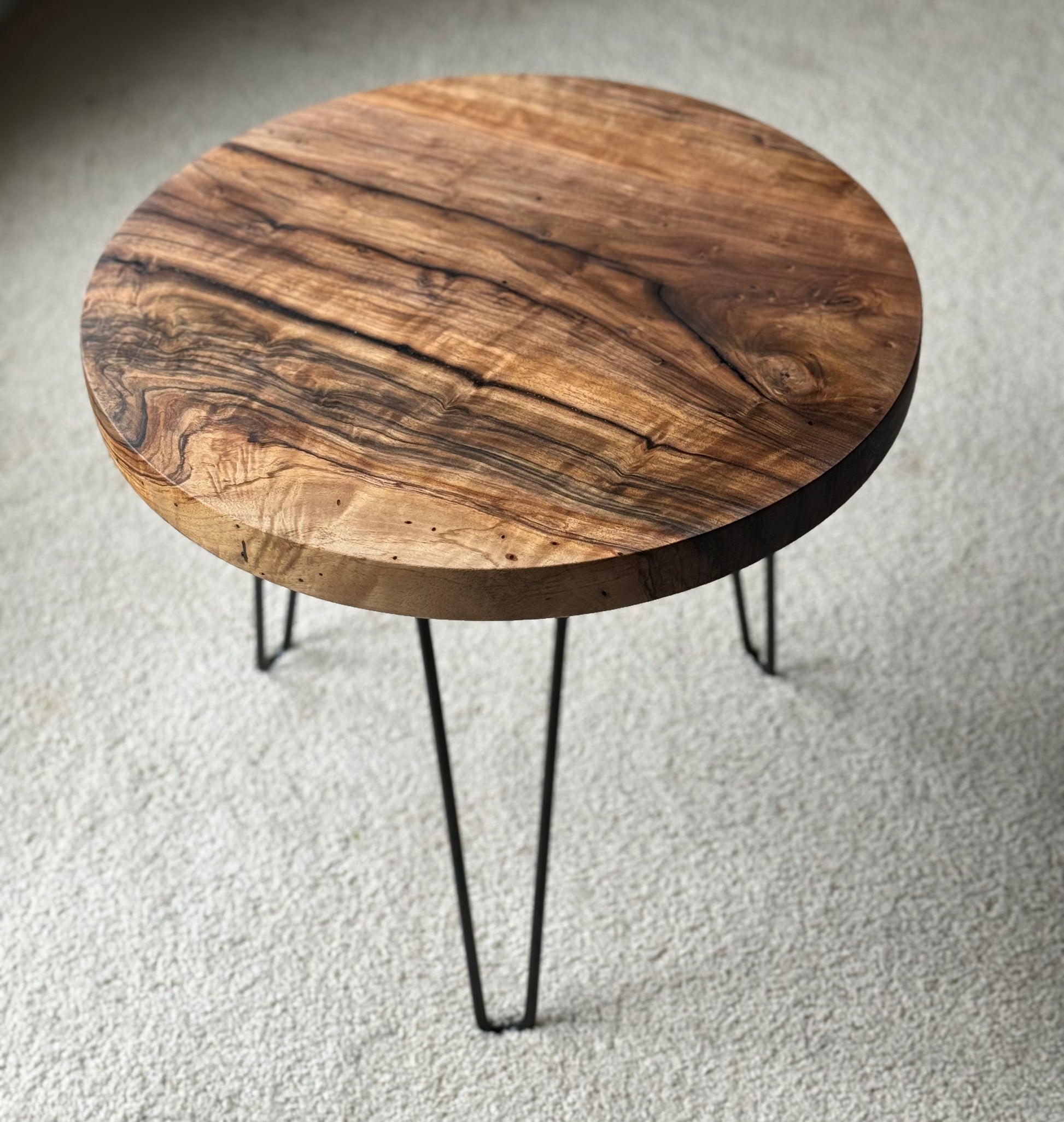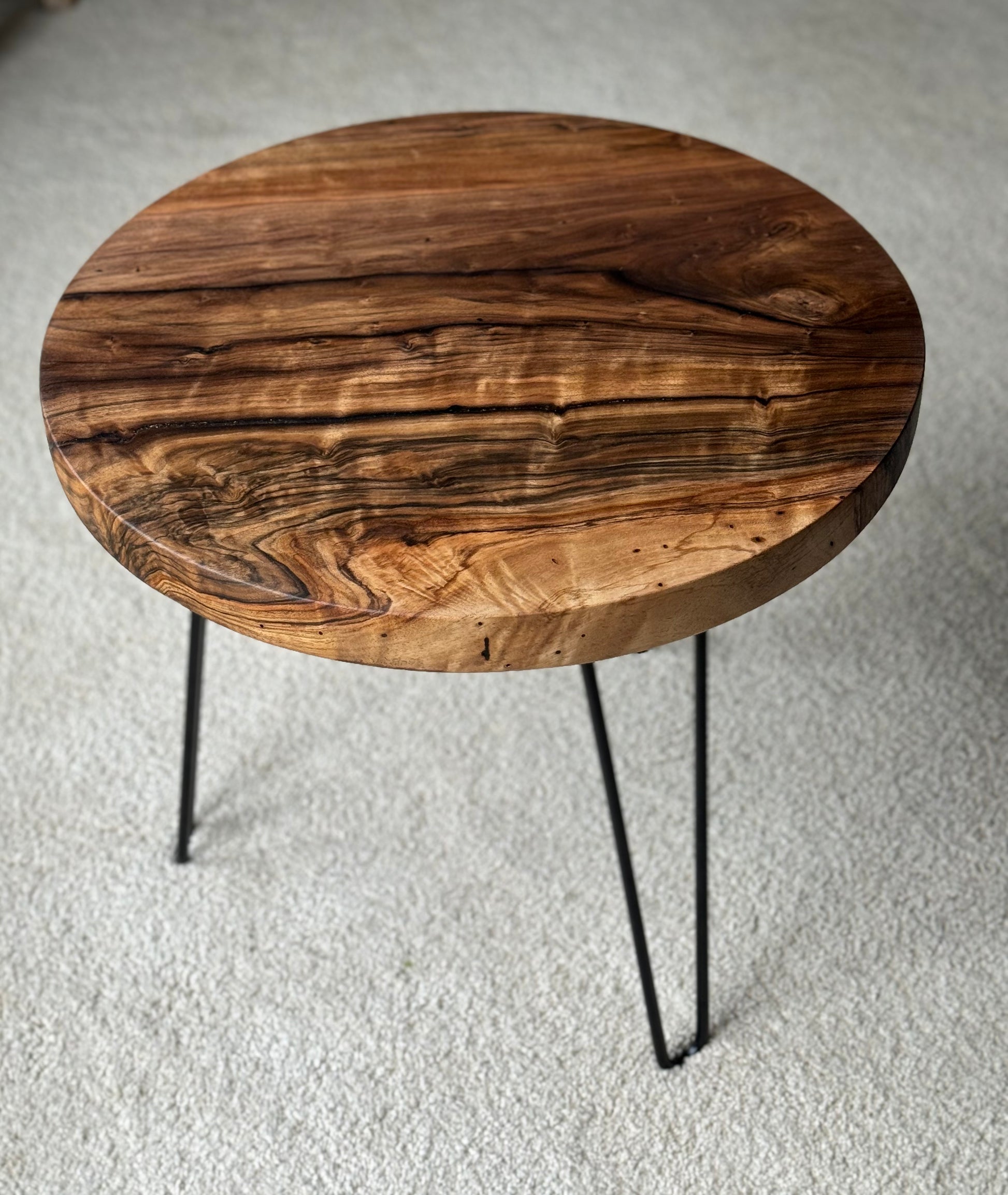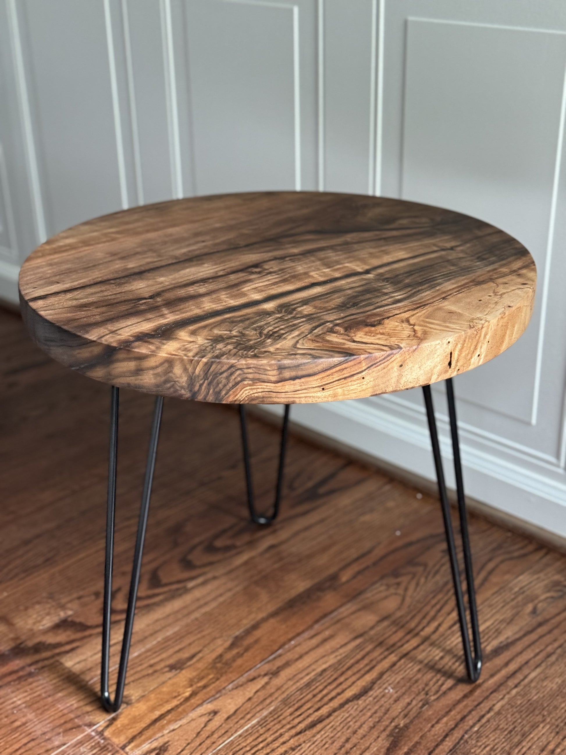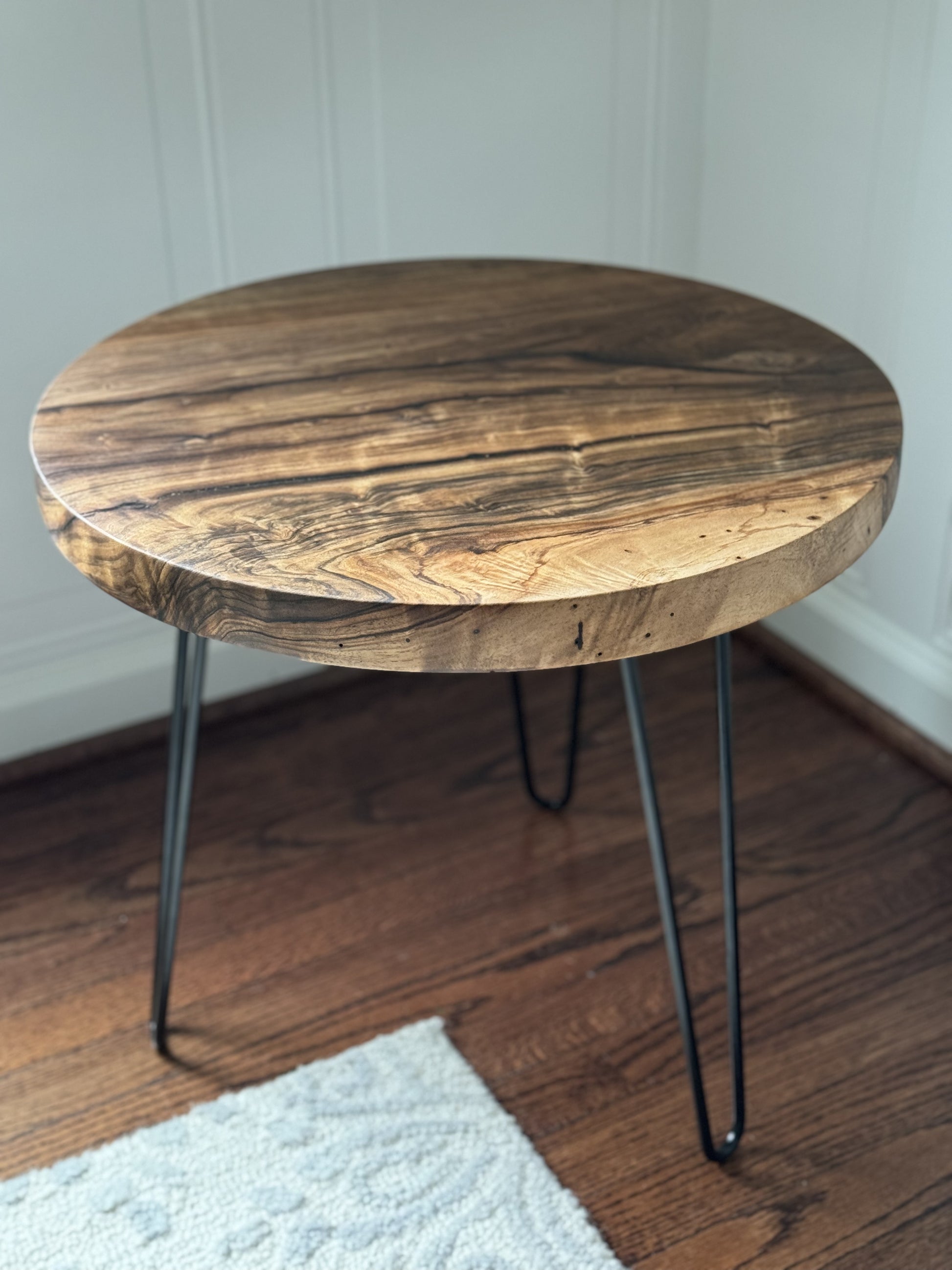 Introducing our exquisite English Walnut End Table, meticulously crafted to elevate any space. With sleek hairpin legs providing stability and style, this table boasts a diameter of 20 inches and stands at a height of 18 inches, making it perfect for any corner or beside your favorite seating area. The mesmerizing grain of English walnut steals the spotlight, while the carefully curated finish enhances its natural allure. Add a touch of sophistication to your décor with this stunning piece of furniture.