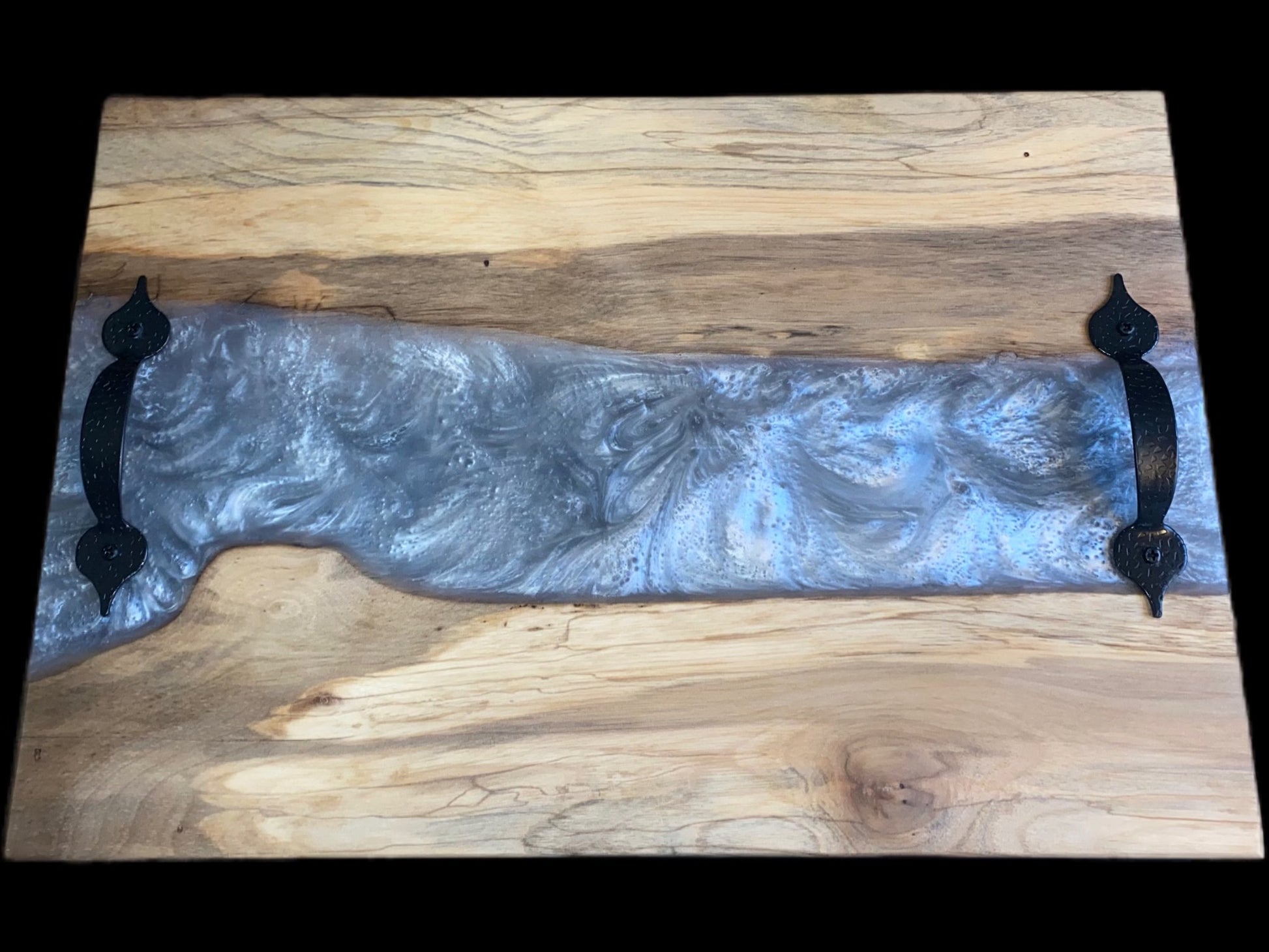 charcuterie board made from spalted maple with a silver epoxy and osmo finish